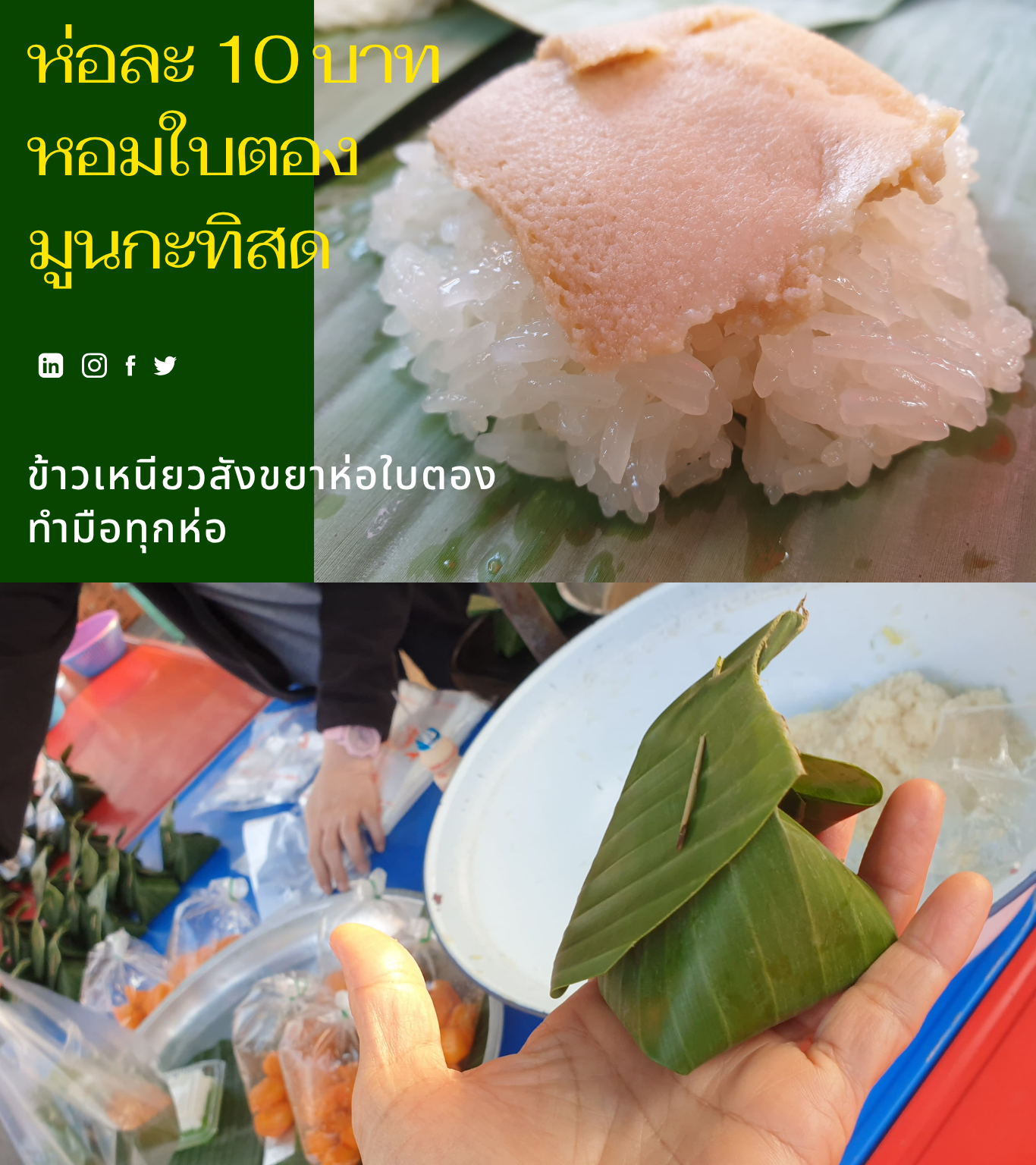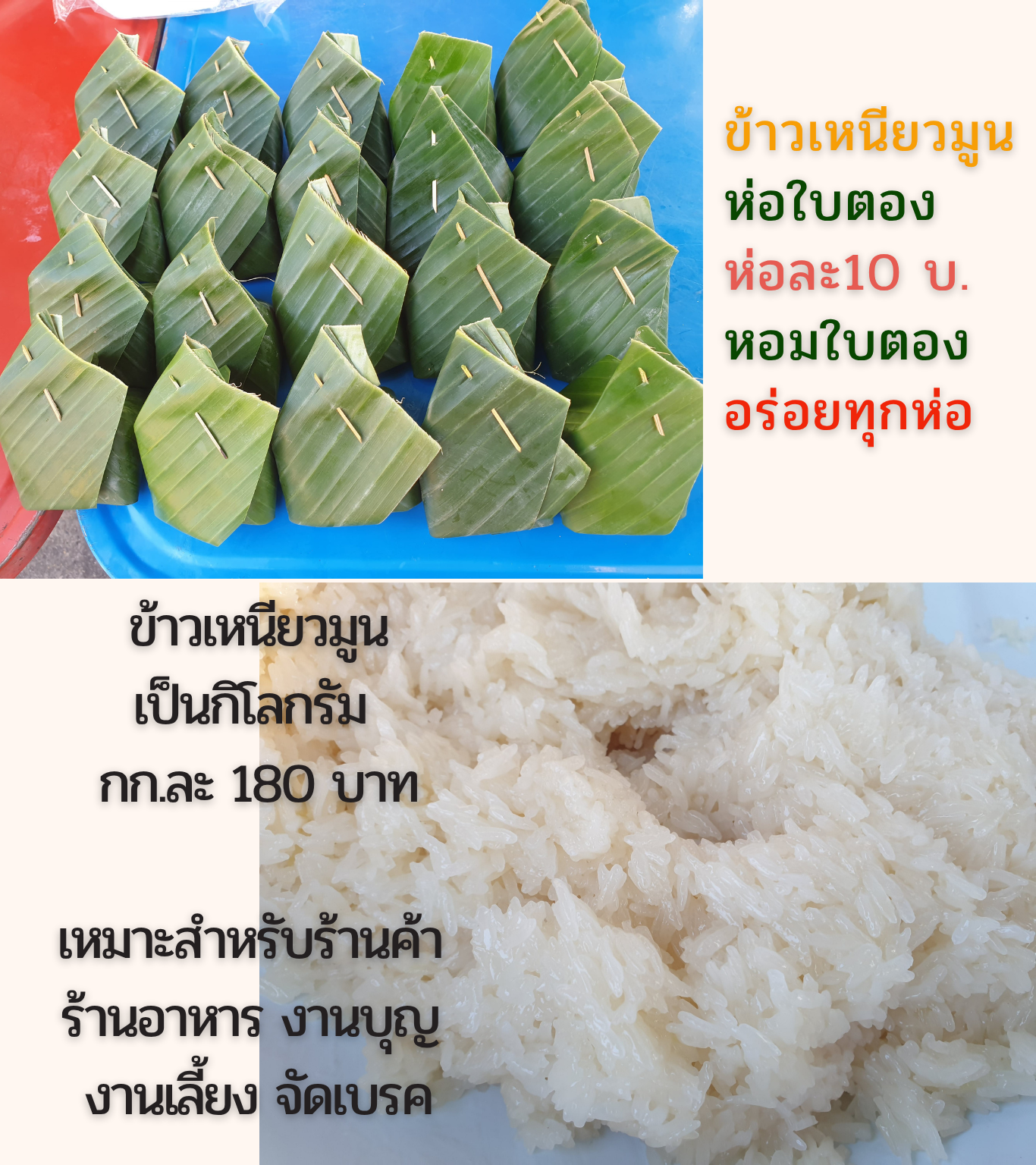 ข้าวเหนียวมูนห่อใบตอง - ห่อละ 10 บาท